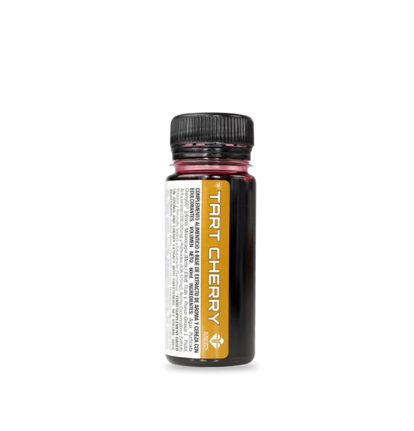 Ayuda a la recuperación. Shot de concentrado de cereza ácida con un alto contenido de antioxidantes (300mg de antocianinas). Una concentración única en el mercado.